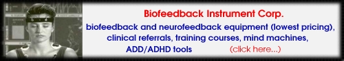 For Neurofeedback/Biofeedback treatment and training directly from your home (anywhere - Nationally and Internationally), by an expert world-class clinician, please call Dr. Philip Brotman, 212-222-5665 (5667 Fax); brotmanp@bellatlantic.net PC and Modem required. For Attention Deficit (ADD/ADHD), Learning disabilities, stress reduction, and anxiety. (NEW!)